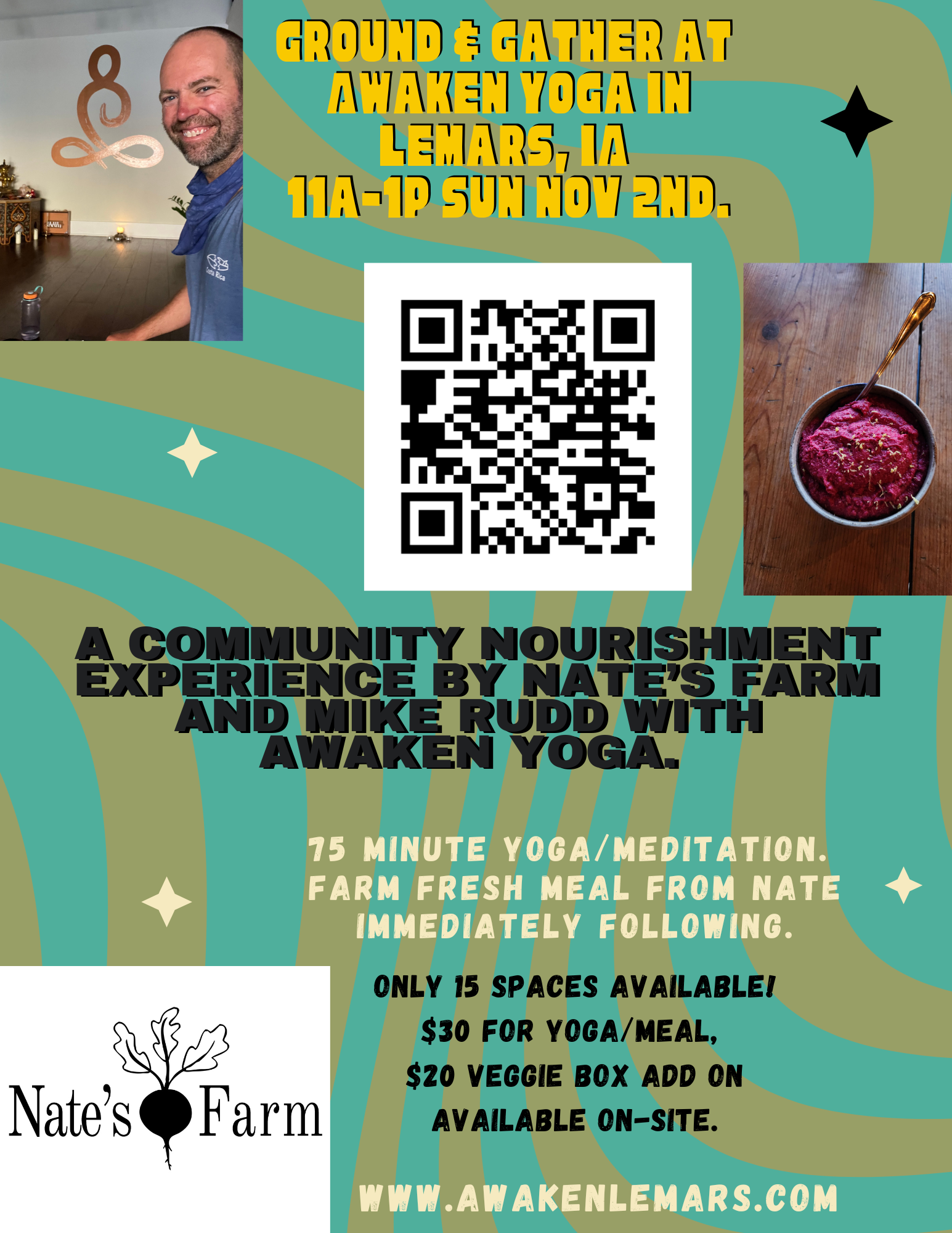 Nathan will be offering a vegetable box after the meal that will include some of his hand tended and harvested delicious veggies, fruit butters, canned items, pesto and or granola to anchor the box you purchase!! These boxes will be sold for $20 add on!
